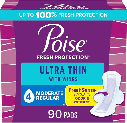 Poise Ultra Thin Incontinence Pads, Moderate Absorbency, Regular Length, 90 Pads (3 Packs Of 30);...