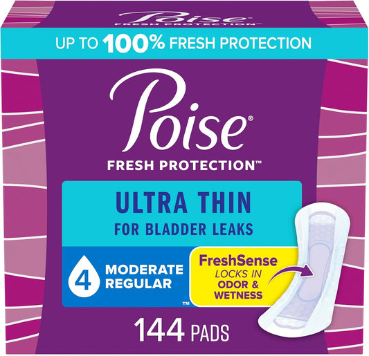 Poise Ultra Thin Incontinence Pads: 144 Postpartum And Incontinence Pads (3 Packs Of 48), 4...