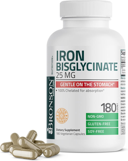 Easy On The Stomach & Non-Constipating: Bronson’s Iron Bisglycinate provides 25 mg of non-constipating Iron...