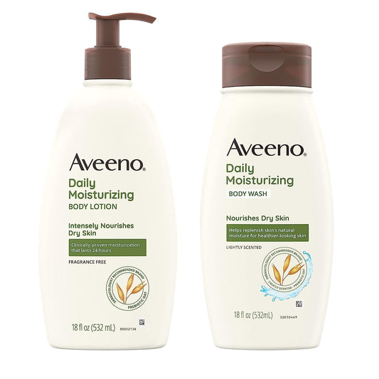 2 Item Aveeno Daily Moisturizing Lotion And Body Wash Skincare Regimen Set For Moisturized Skin....