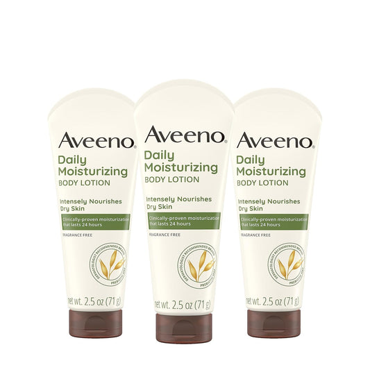 Value Pack Of Three 2.5-Fluid Ounce Tubes Of Aveeno Daily Moisturizing Body Lotion With Prebiotic...