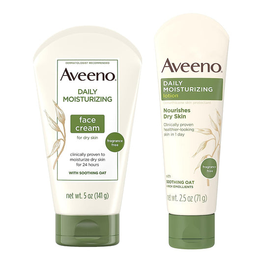 2-pack skincare set with one 5-ounce tube of Aveeno Daily Moisturizing Fragrance-Free Face Cream and...