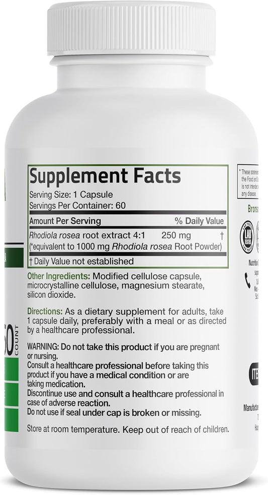 Herbal Support: Bronson Rhodiola Rosea Helps To Support A Healthy Stress Response, Mood And Brain...