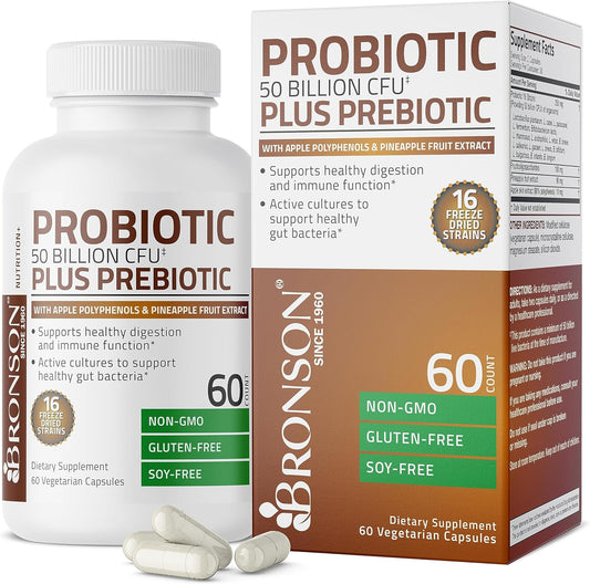 50 Billion CFU 16 Freeze Dried Strains Shelf Stable Formula: Bronson’s Probiotic 50 Billion CFU...