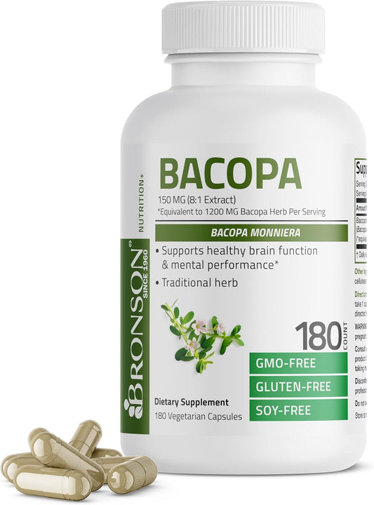 Brain Support Supplement: Bronson Bacopa Provides Equivalent To 1200Mg Per Capsule (From 150Mg 8:1 Extract)...