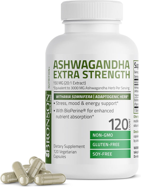 Extra Strength Formula: Bronson’S Ashwagandha Provides Equivalent To 3000 Mg Ashwagandha Herb Powder From 150Mg...