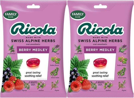 Ricola Berry Medley Cough Suppressant Throat Drops, 19ct Bag, Pack of 2