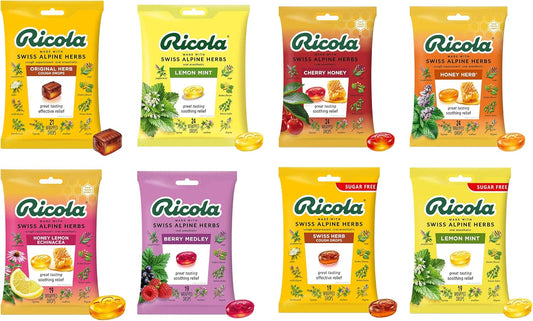 Ricola All avors - Original, Lemon Mint, Cherry Honey, Honey Herb, Echinacea Honey Lemon, Berry...