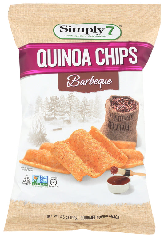 SIMPLY7 BARBEQUE QUINOA CHIPS ARE MADE WITH SIMPLE INGREDIENTS LIKE QUINOA, POTATO STARCH, SUNFLOWER OIL...