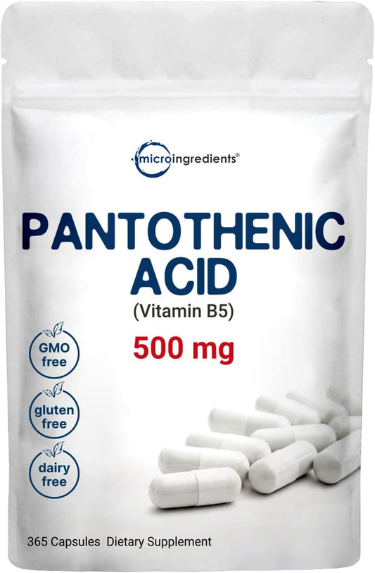 Micro Ingredients Vitamin B5 Supplement, Vitamin B5 Capsules, 500Mg Pantothenic Acid Per Pill, 365 Counts...
