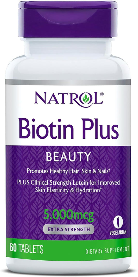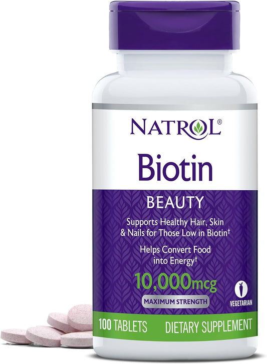 Natrol Biotin Description: Maximum Strength Promotes Healthy Hair and Strong Nails Supports Cellular Energy Production...