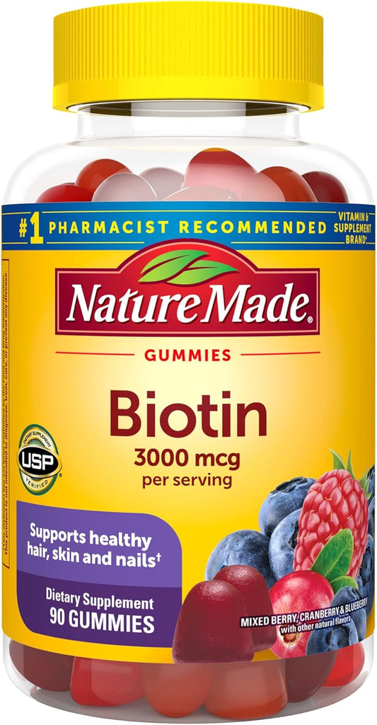 Biotin support supplement: contains one 90 count bottle of Nature Made Biotin 3000 mcg Gummies...
