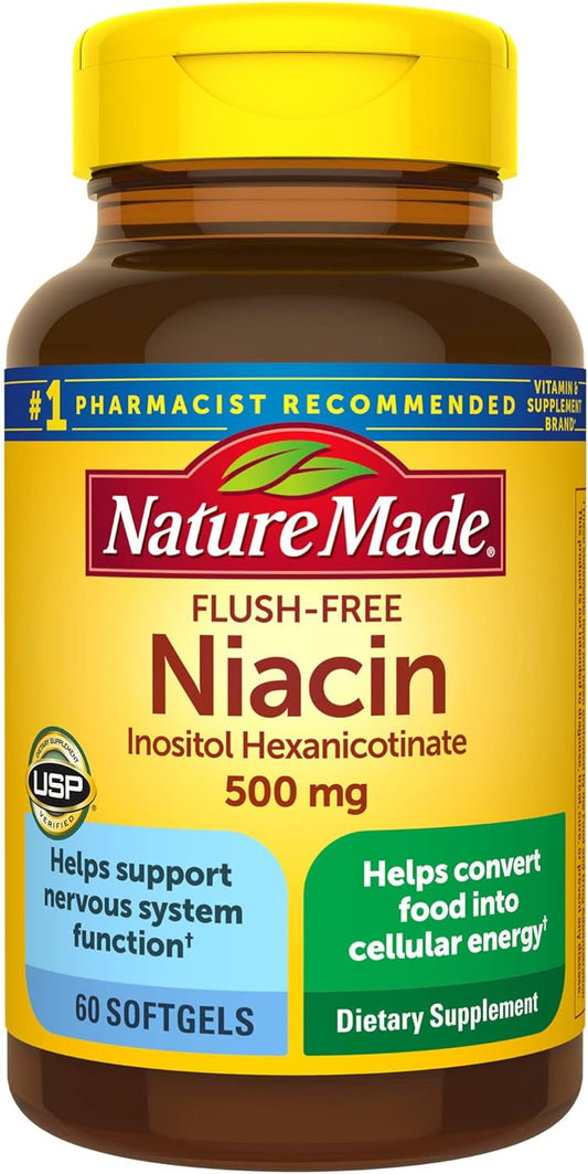 Nervous system support supplement: contains one 60 count bottle of Nature Made Flush Free Niacin...