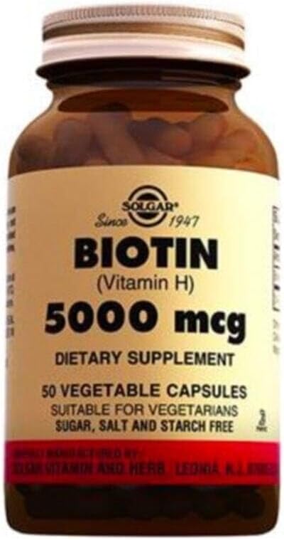 Solgar Biotin 5000mcg Helps Support Healthy Hair, Nails, And Skin; Biotin is necessary for certain...