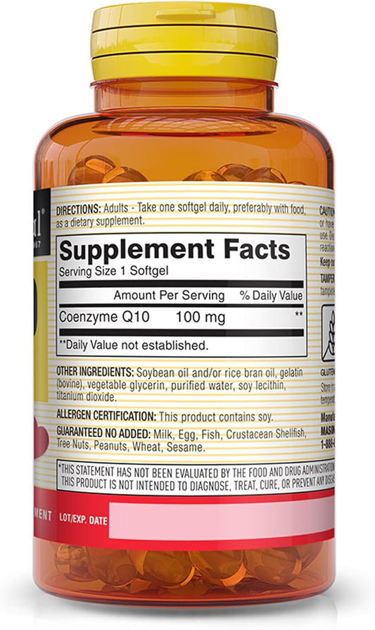 Mason Natural Co Q10 100 mg softgels are formulated to give a high potency dose...
