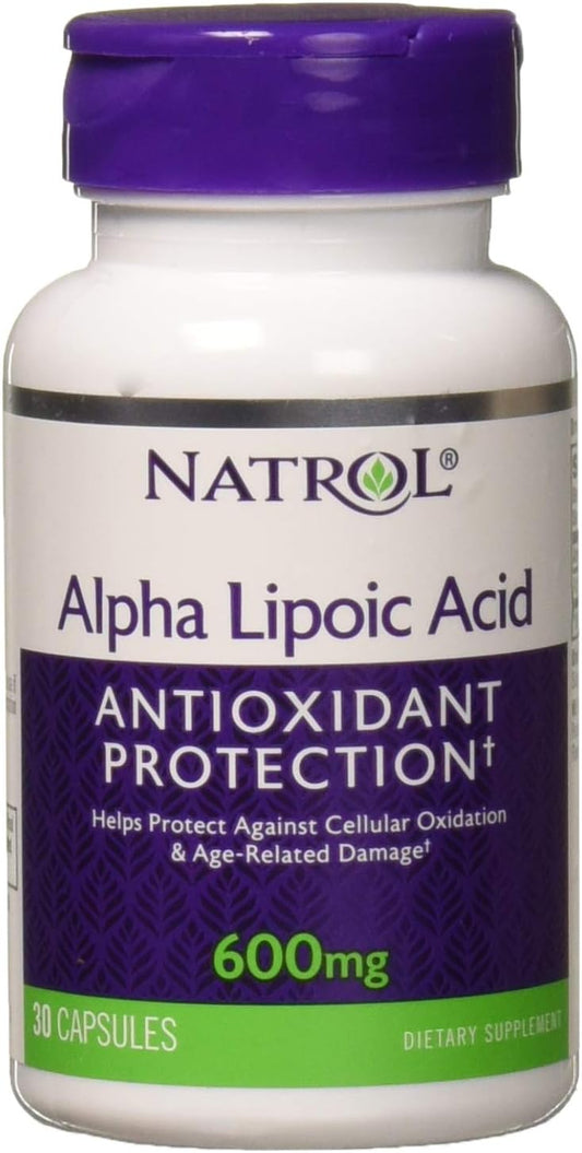 Natrol Alpha Lipoic Acid 600 Mg, Dietary Supplement For General Wellness, 30 Capsules, 30 Day Supply