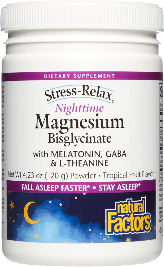 Natural Factors, Stress-Relax Nighttime Magnesium Bisglycinate Powder with Melatonin, L-Theanine and Pharma GABA, Supports Sleep...