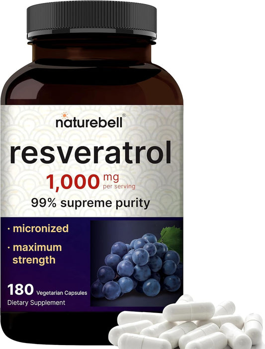 Max Strength Trans-Resveratrol Veggie Capsules, 1,000Mg Per Serving With 99% Pure Resveratrol, Easily Absorbed Bioavailable...