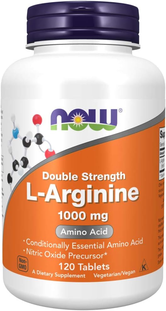 DOUBLE STRENGTH L-ARGININE: NOW offers this non-GMO, double strength L-Arginine supplement in 1,000 mg tablets...