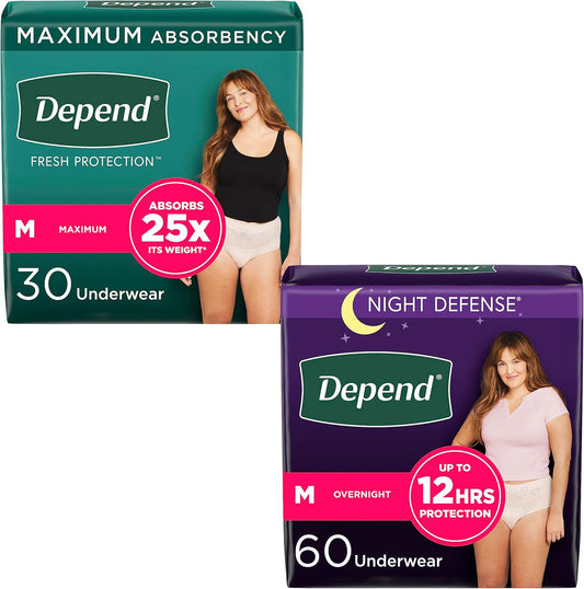 NEW LOOK! Bundle Includes: Depend Fresh Protection Incontinence Underwear for Women, 30ct, and Depend Night...