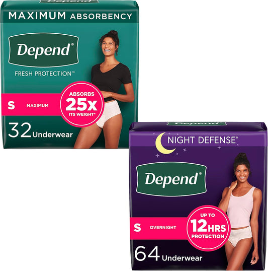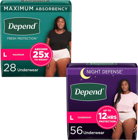 NEW LOOK! Bundle Includes: Depend Fresh Protection Incontinence Underwear for Women, 28ct, and Depend Night...