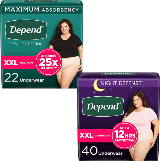 NEW LOOK! Bundle Includes: Depend Fresh Protection Incontinence Underwear for Women, 22ct, and Depend Night...
