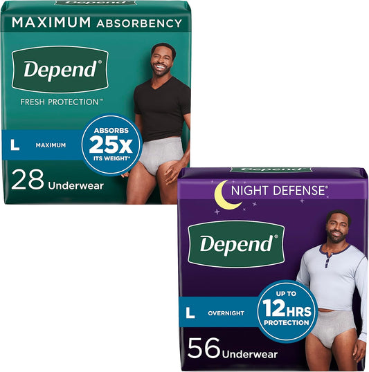 NEW LOOK! Bundle Includes: Depend Fresh Protection Incontinence Underwear for Men, 28ct, and Depend Night...