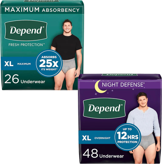 NEW LOOK! Bundle Includes: Depend Fresh Protection Incontinence Underwear for Men, 26ct, and Depend Night...