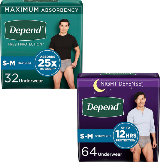 NEW LOOK! Bundle Includes: Depend Fresh Protection Incontinence Underwear for Men, 32ct, and Depend Night...