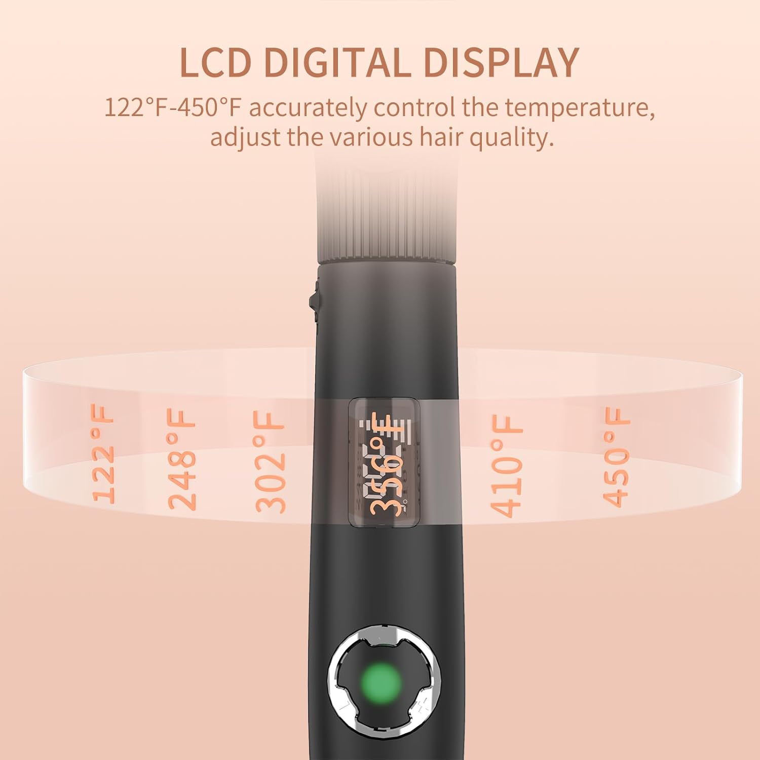 MULTIPLE Temperature Settings & LCD DisplayThe curling wand has different temperature settings from 122°F to 450°F. Whether your hair is hard or soft, coarse or sleek, you can choose the right temperature to create your hairstyle. The hair curling wand is equipped with an LCD display screen, which can display the real-time temperature during the heating process