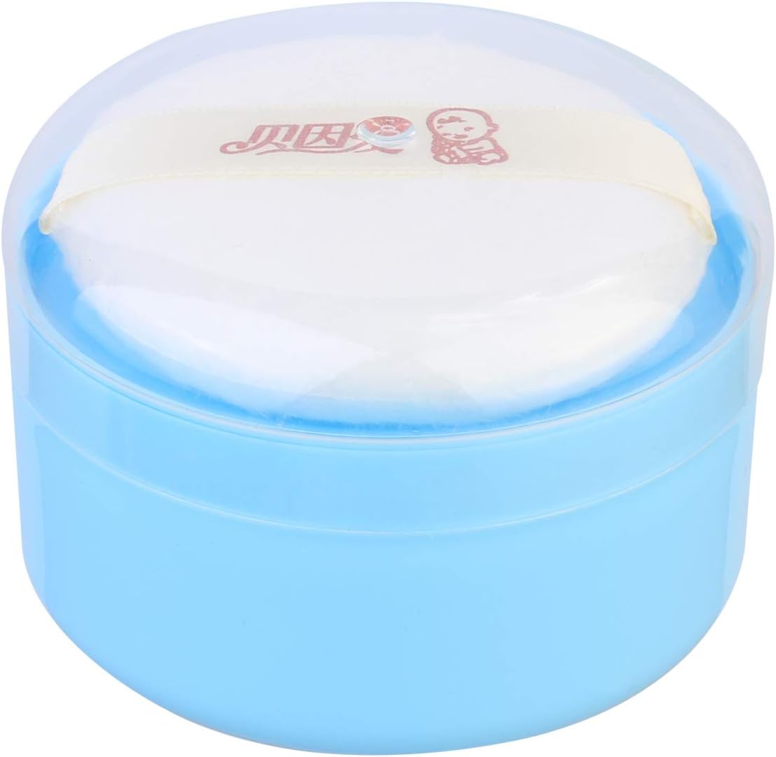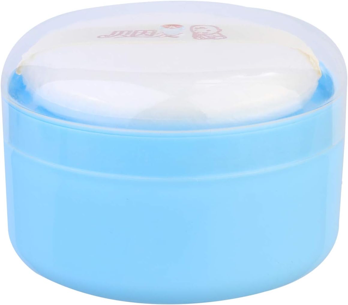 1 Set Baby After-Bath Puff Box Portable Empty Body Powder Container Dispenser Case with Sifter and Powder Puffs for Home Travel Use (Blue)