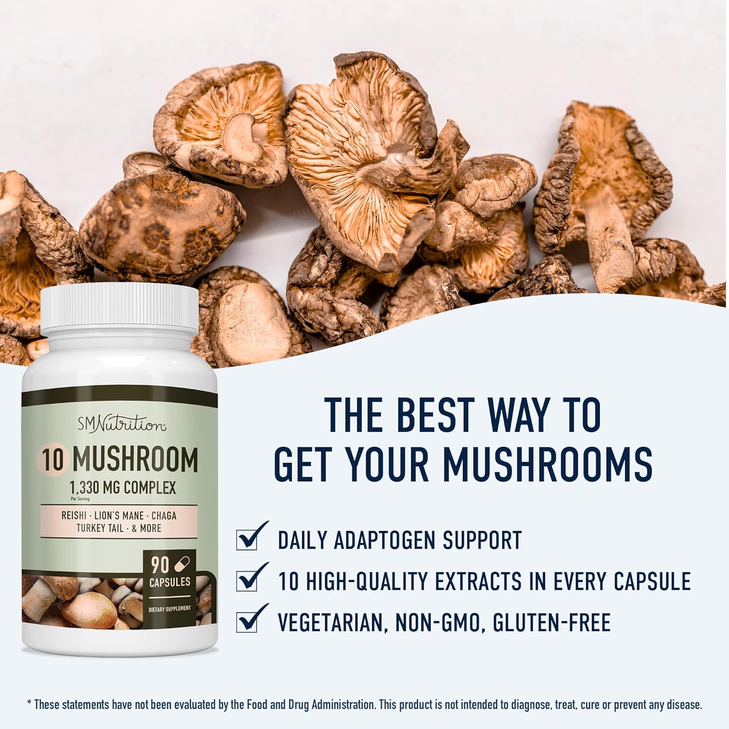 10 Mushroom Complex Supplement | 1300+ Mg Blend | Immune & Adaptogen S