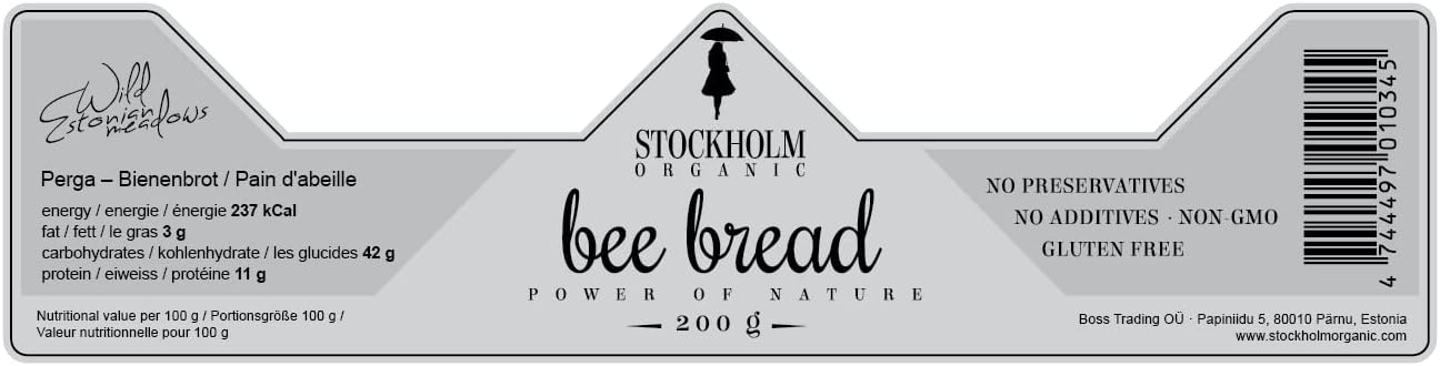 Product description Bee bread (perga) is a fermented, enzymatically-activated food made by bees inside the hive, with around 25% honey or nectar, and 70% pollen. Considered far superior to flower pollen, protein bioavailability is significantly enhanced. Bee bread has a large variety of minerals and has high quantities of iron, cobalt, phosphorus, calcium. It is one of the richest natural foods containing selenium. Bee bread is also an excellent source of potassium and B-group vitamins. Amino acids, which are predigested for easy assimilation in the ratio that the human body needs, constitute about 15% of the dry substance in bee bread. Collected in Estonia from bee hives which stand in the meadows near to the small forests and far away from big cities with no industry or factories nearby. Produced to high ecological standards, our bee bread is unprocessed, 100% pure and natural, and free from antibiotics and pesticides. Free from gluten, corn, wheat, soya and dairy and GMO ingredients. The granules stay fresh for 2.5 years if stored in a dry, cool and dark place. Ingredients Bee Bread P.when('A').execute(function(A) { A.on('a:expander:toggle_description:toggle:collapse', function(data) { window.scroll(0, data.expander.$expander[0].offsetTop-100); }); }); Directions Consume 1 or more teaspoons per day, preferably in the morning. See more,100% natural, no additives,boost your energy levels - consume 1 or more teaspoons per day, preferably in the morning,Bee bread has a large variety of minerals and has high quantities of iron, cobalt, phosphorus, calcium. It is one of the richest natural foods containing selenium. Bee bread is also an excellent source of potassium and B-group vitamins,Please notice that colour, taste and texture may vary depending on a season it was collected