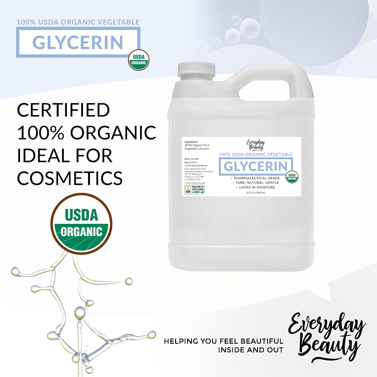About this item 100% Organic Glycerin: Your skin deserves the best, and that’s precisely what our USDA Certified 100% Organic Glycerin offers. Derived from sustainably sourced coconut oil, NOT PALM OIL. It’s more than just certified organic. It’s a commitment to the utmost purity, free from synthetic additives, preservatives, fillers and harmful chemicals, providing your skin with the care it deserves. Non-GMO, Vegan, Cruelty Free See more product details,100% Organic Glycerin: Your skin deserves the best, and that’s precisely what our USDA Certified 100% Organic Glycerin offers. Derived from sustainably sourced coconut oil, NOT PALM OIL. It’s more than just certified organic. It’s a commitment to the utmost purity, free from synthetic additives, preservatives, fillers and harmful chemicals, providing your skin with the care it deserves. Non-GMO, Vegan, Cruelty Free