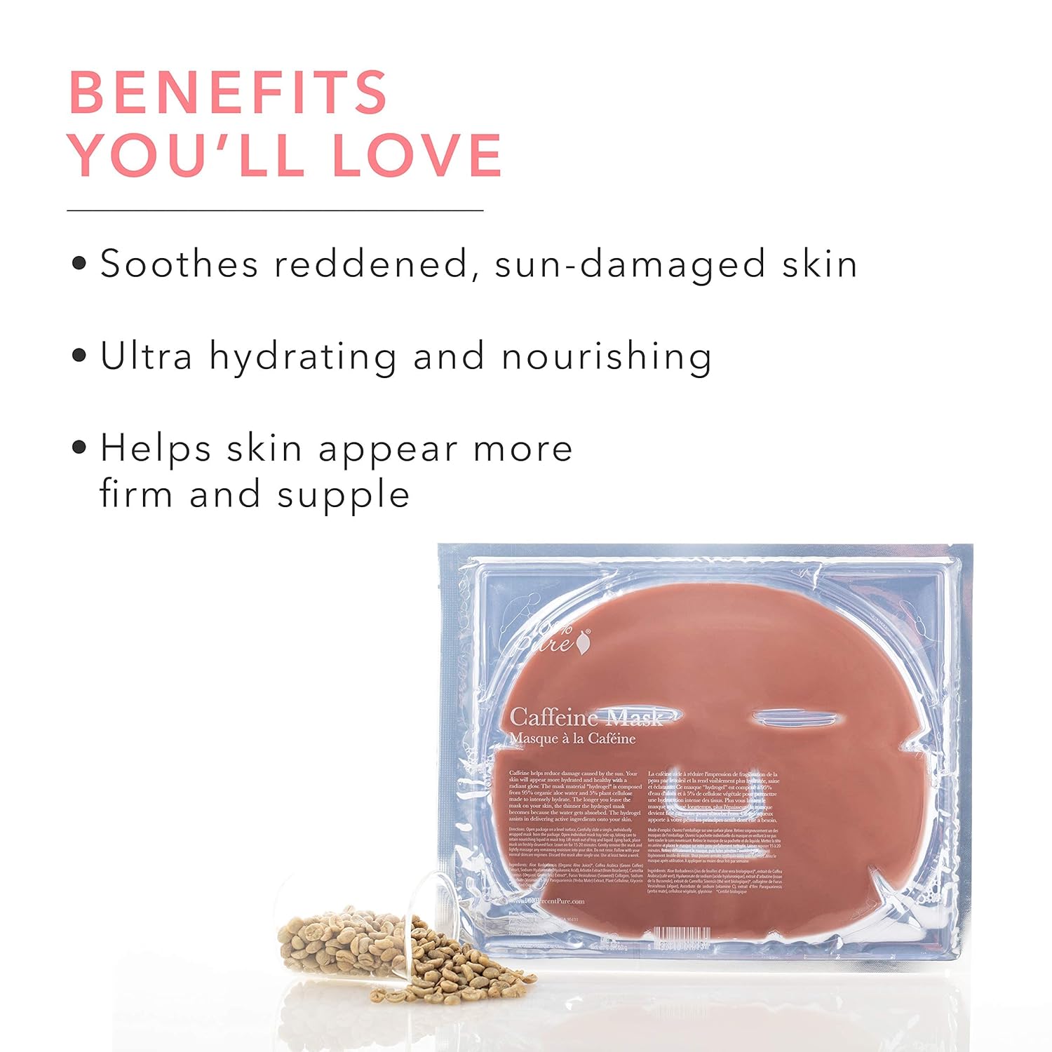 100% Pure Caffeine Face Mask (1 Pc), Soothing Face Mask With Hyaluronic Acid, Hydrating Skin Care, Soothes Skin, Sustainably Made - Single Mask