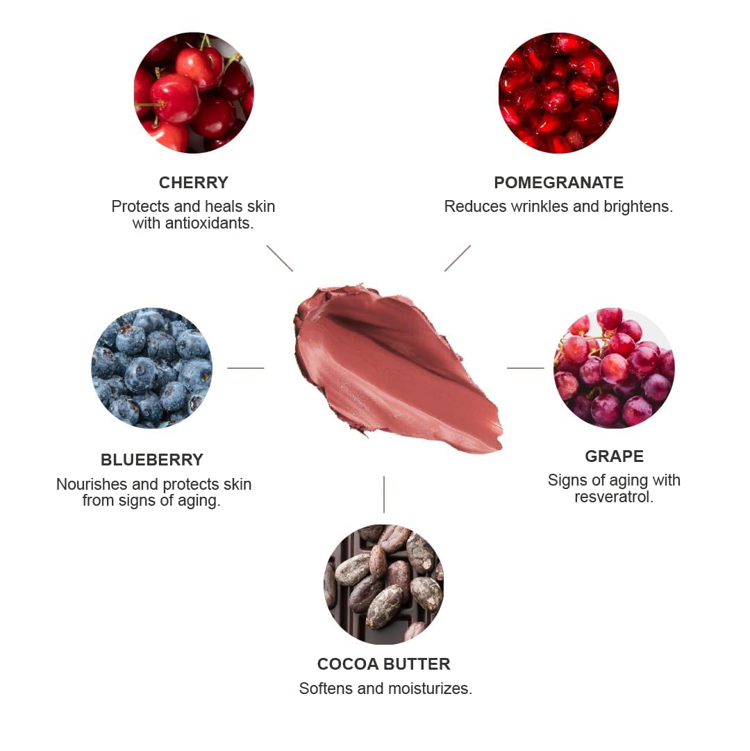 COMFORTABLE WEIGHTLESS WEAR - We use soft rice powder to achieve that perfect matte finish, instead of unhealthy talc; made with a nourishing blend of cocoa butter, shea butter, and vitamin E to moisturize and protect your lips from dryness