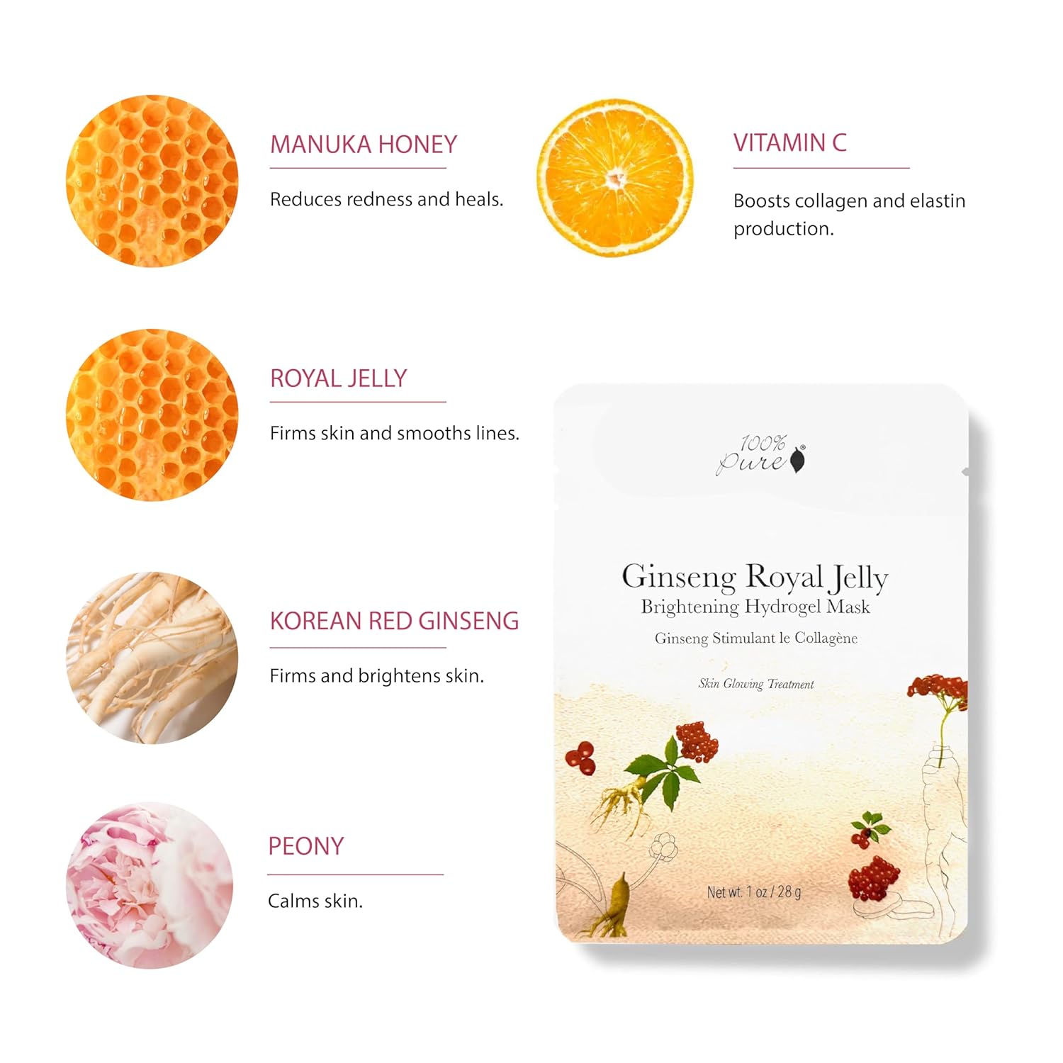 100% Pure Ginseng Royal Jelly Face Mask - Anti-Aging Face Mask For Women & Men With Vitamin C & Hyaluronic Acid - Collagen Skincare For Firm, Smooth Skin, Anti-Wrinkle Self Care - 1 Facemask