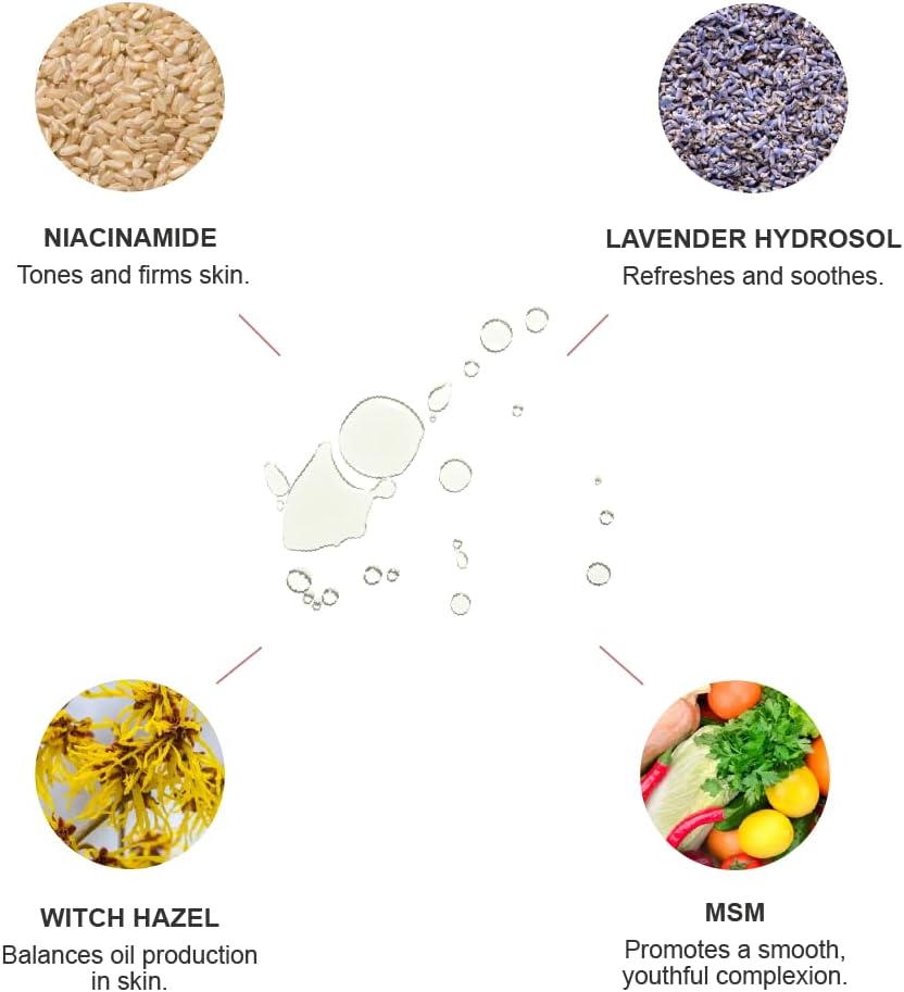 100% Pure Lavender Niacinamide Pore Minimizer Tonique Facial Purify & Tone Skincare With Witch Hazel Balancing Face Mist Helps Calm Firm & Minimize The Look Of Pores & Wrinkles, Vegan - 1.7 Fl Oz