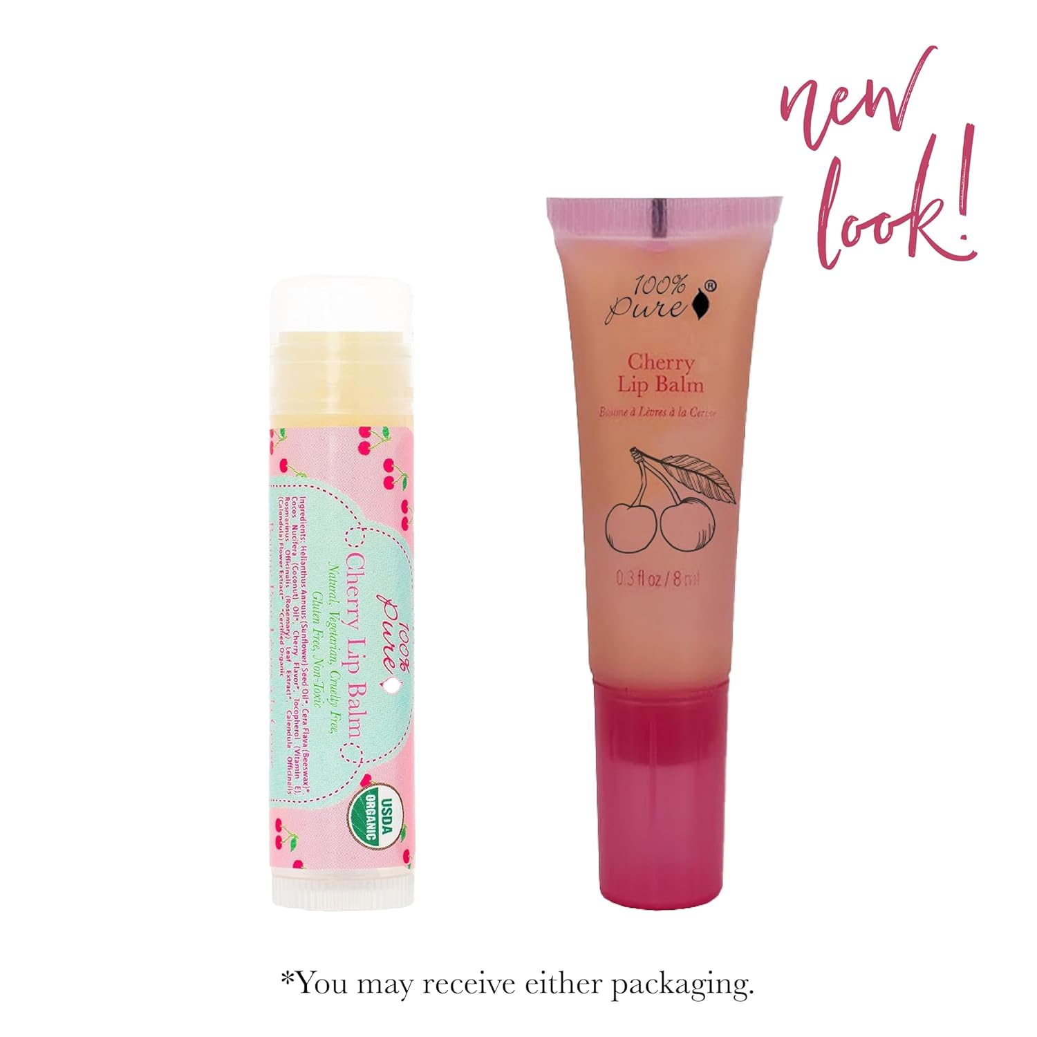 100% Pure Organic Cherry Lip Balm, Moisturizing, Soothing For Dry, Chapped Lips, Made W/Coconut Oil, Vitamin E, Natural Lip Balm - 0.3 Oz
