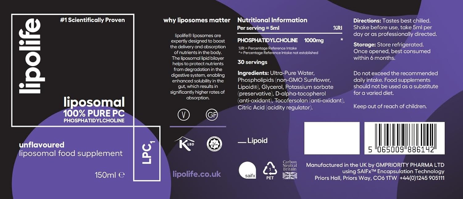 100% Pure Sunflower Phosphatidylcholine 1000Mg Lpc1-150Ml Lipolife