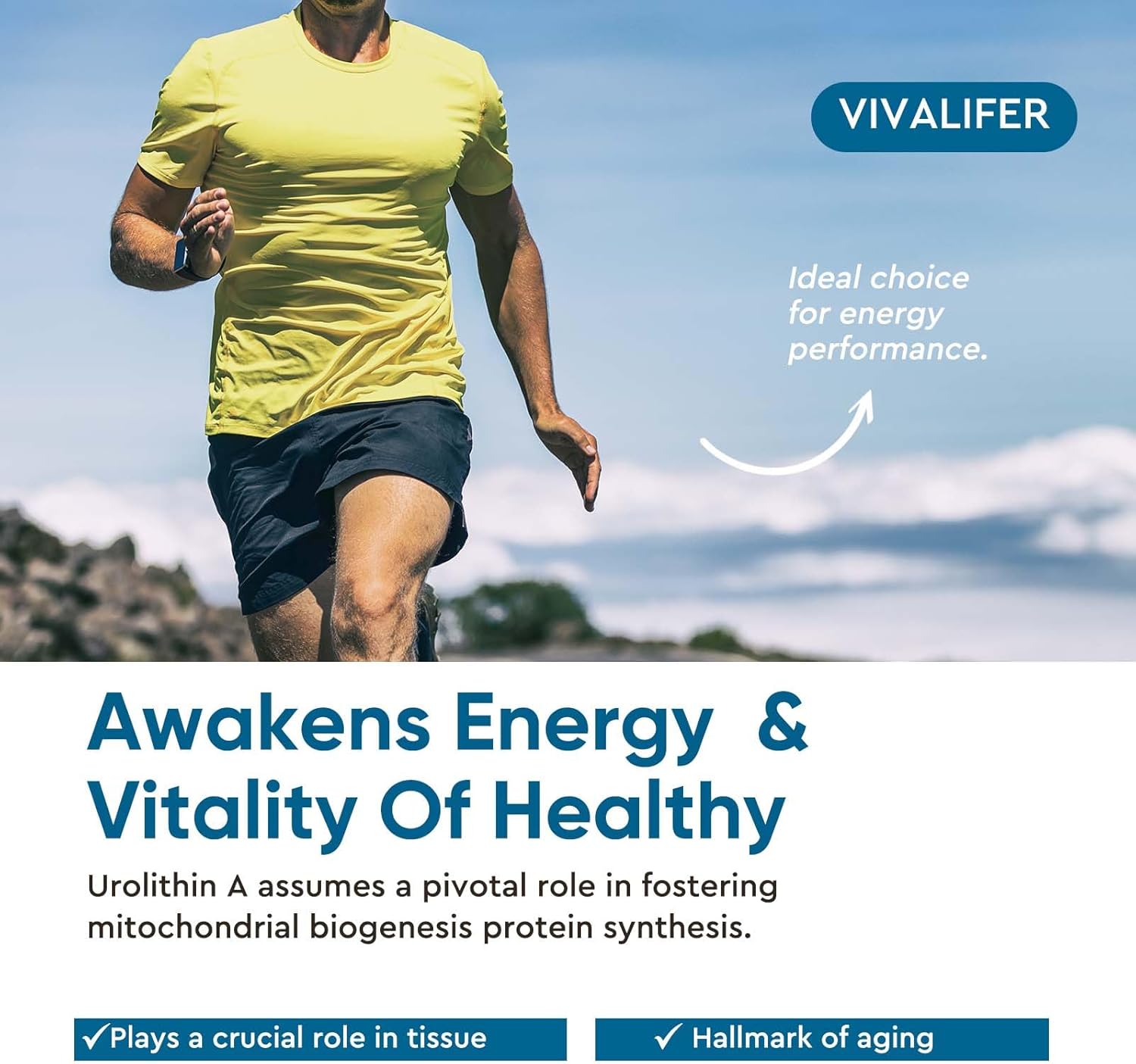 Boosts Energy and Vitality: Urolithin A supports metabolism, boosts energy levels, enhances physical performance, and supports cognitive function