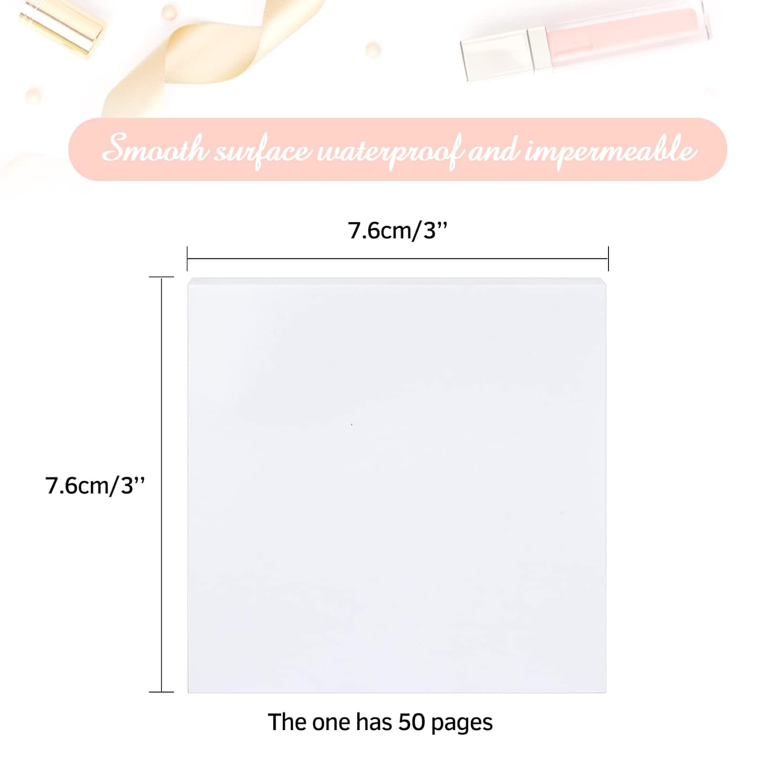 ABOUT THE PRODUCT: 1 > The cosmetic palette made of high quality PE film ,sturdy and lightweight, easy to carry anywhere 2 > The makeup palette size: 3โ x 3โ / 7.6cm x 7.6cm ( L x W ) 3 > Our color mixing tray are smooth, so you can see the mixed color whether consistent with your skin during your makeup works.Perfect for professionals beauty salon or home personal use100PCS Disposable Nail Art Cosmetic Palette paper, Makeup Palette Mixing Tray Apply for Eye Shadow Nail Art Pigment Blending