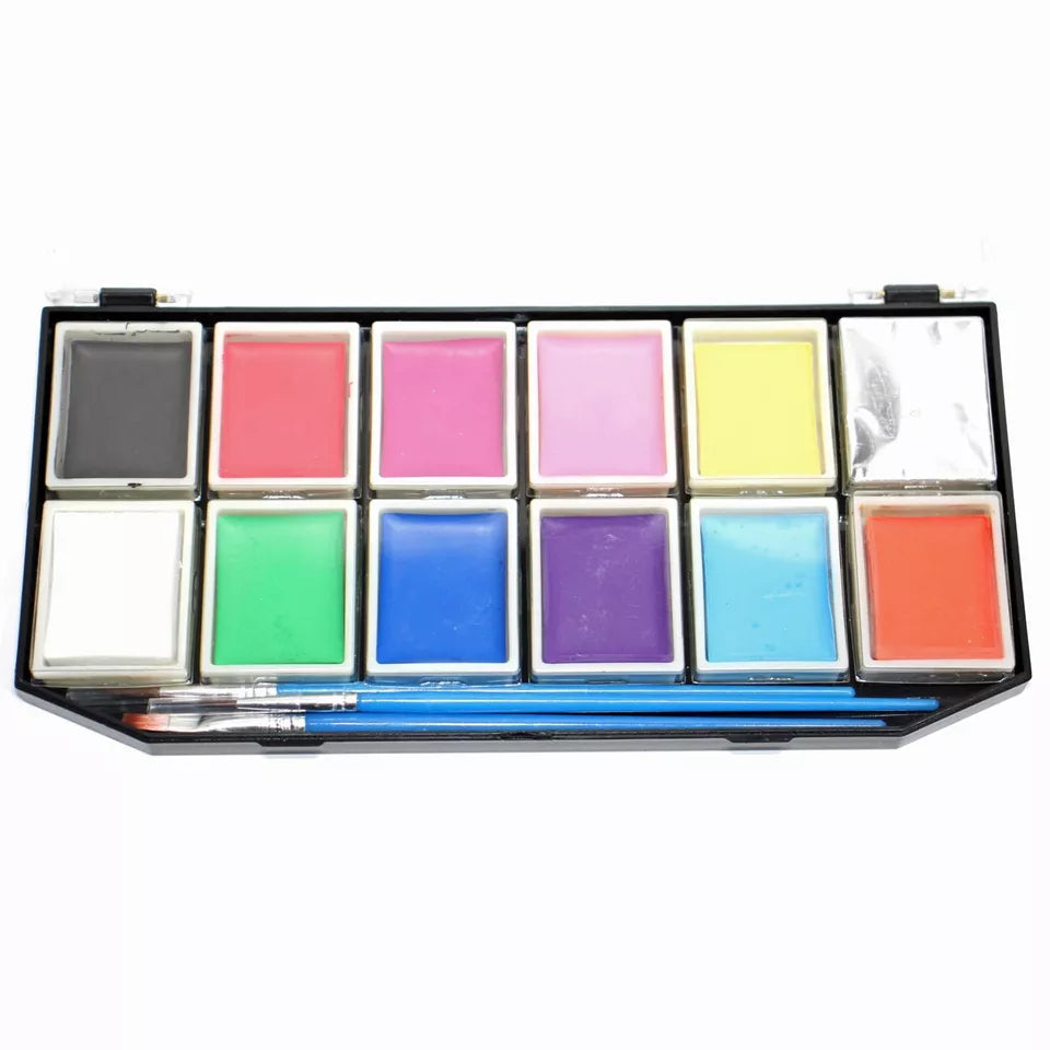 12 Color Face Paint Kit for Kids Washable set Variety Party Pack Stencils