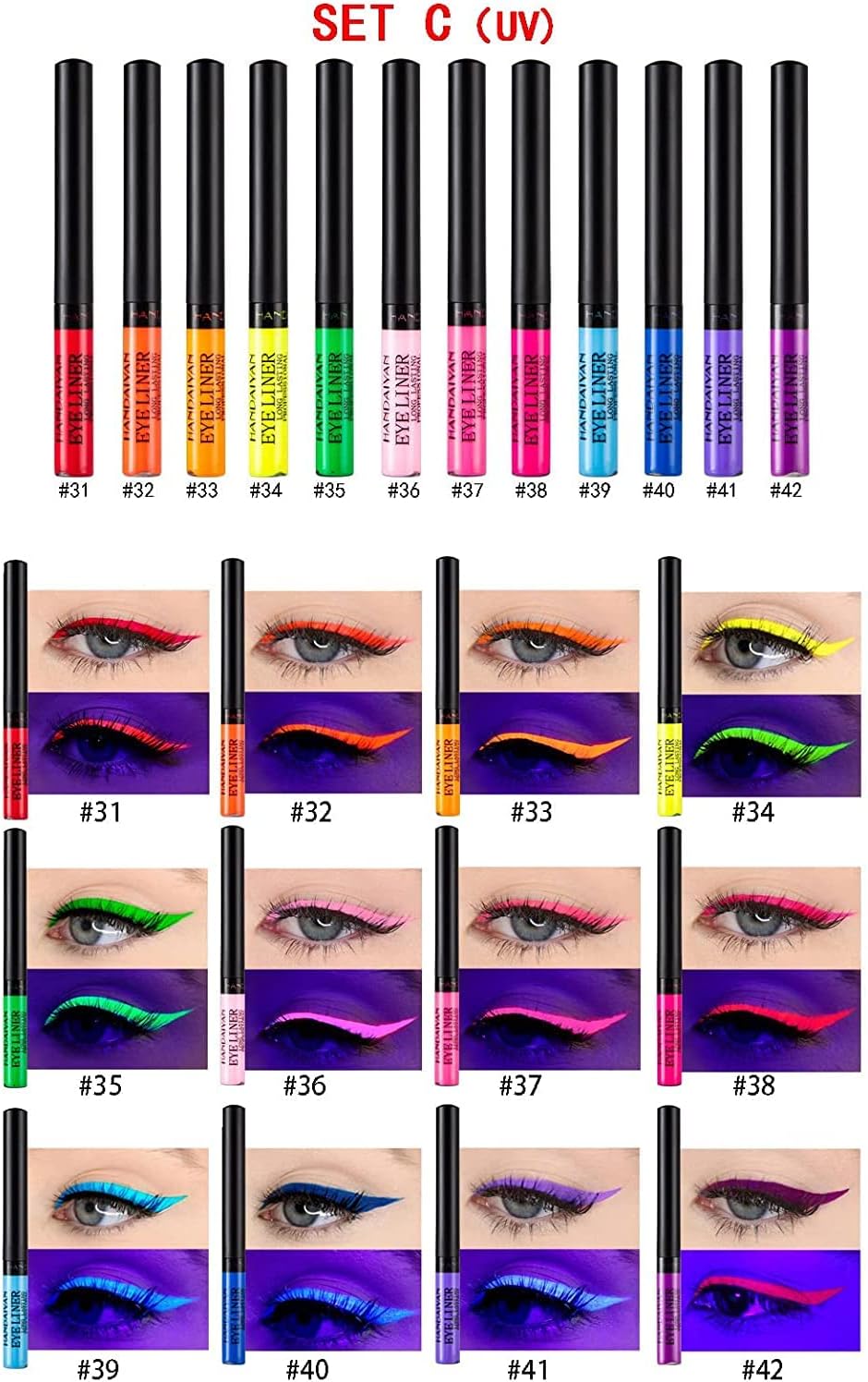 12 Colors Liquid Eyeliner Set, Colorful Matte Liquid Eyeliners Waterproof Highly Pigmented Long Lasting Eye Liners Makeup Luminous Eye Liner Pencil Cosmetics # C