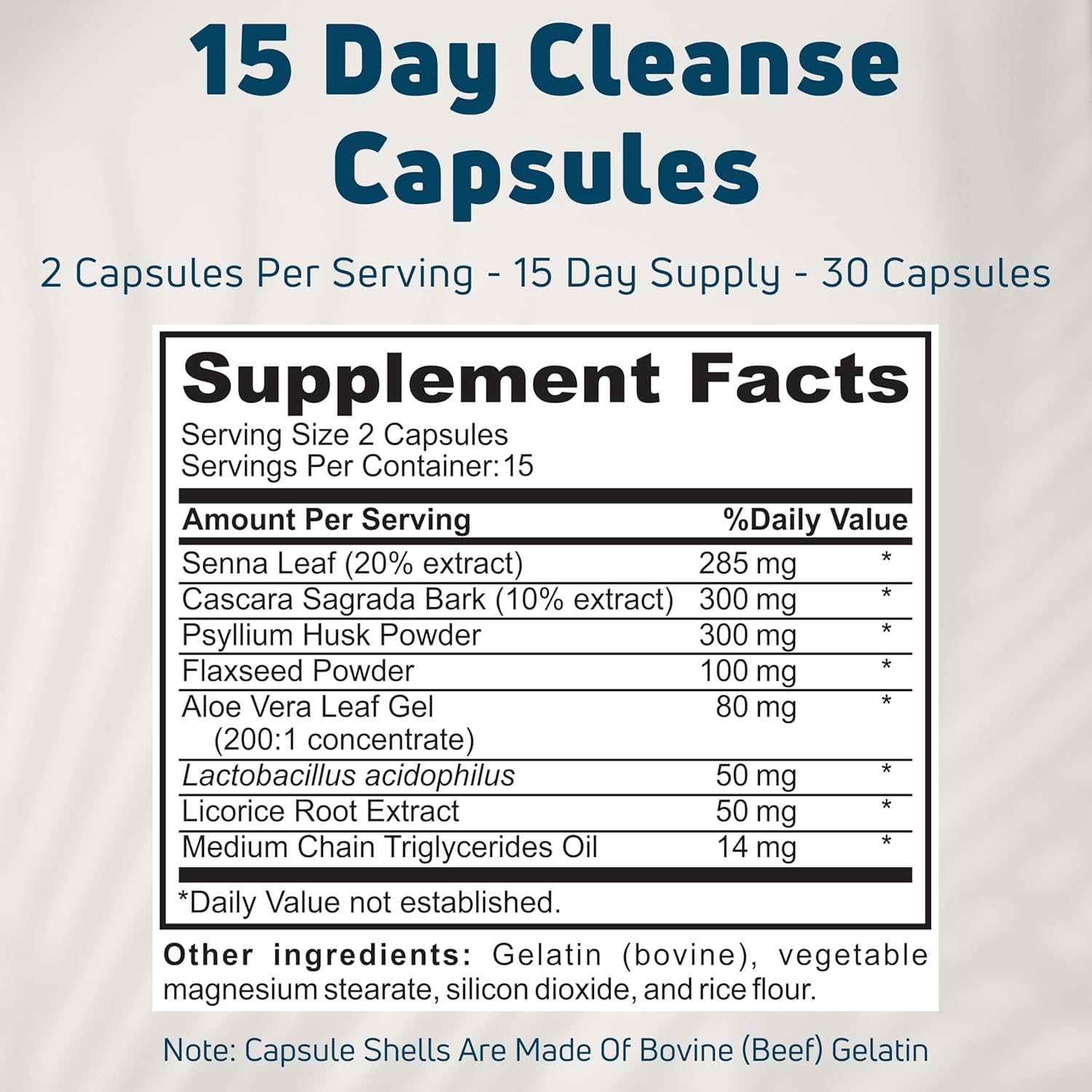 15 Day Cleanse Capsules - Colon Cleanse For Digestive Health, Fewer Cravings & Glowing Skin - 15 Day Gut Cleanse, Detox Cleanse - 30 Tasteless, Gluten-Free, Soy-Free Capsules