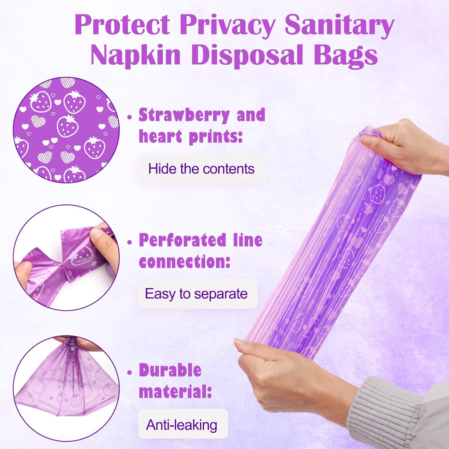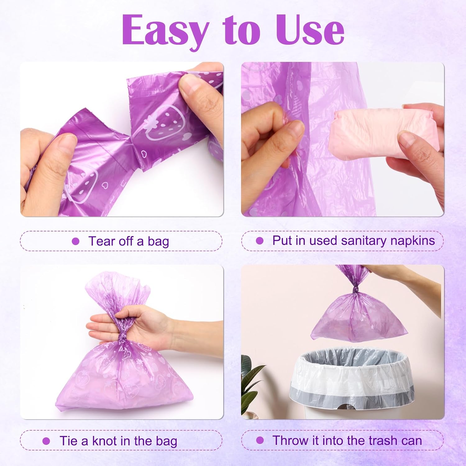 Sanitation & Odor Reduction: Use Personal Care Disposal Bags To Deal With Sanitary Napkins, Tampons, Panty Liners, Diapers, Or Condoms, Can Avoid Clogging The Bathroom, At The Same Time, Our Bag With A Hint Of Strawberry Flavor, It Can Mask Some Odors And Keep Clean And Hygienic