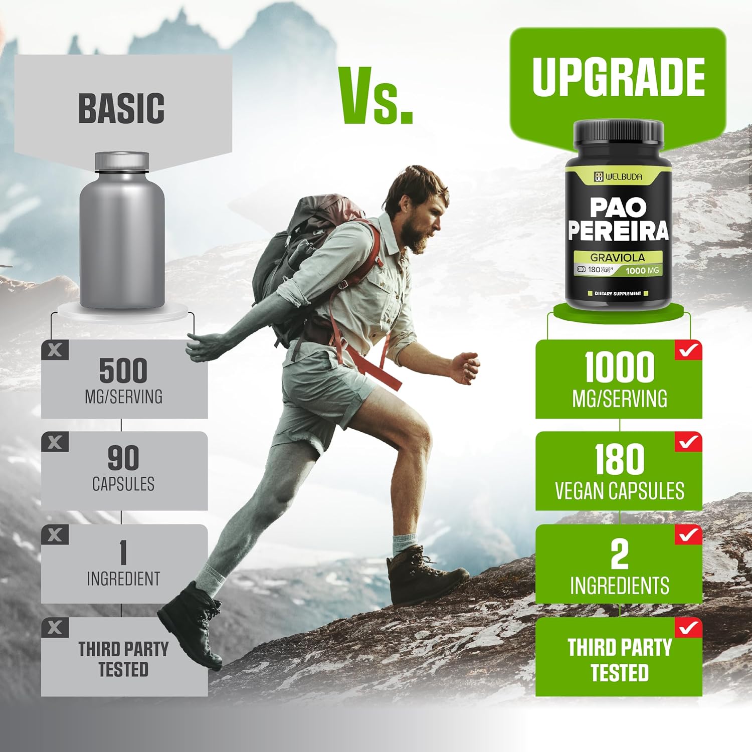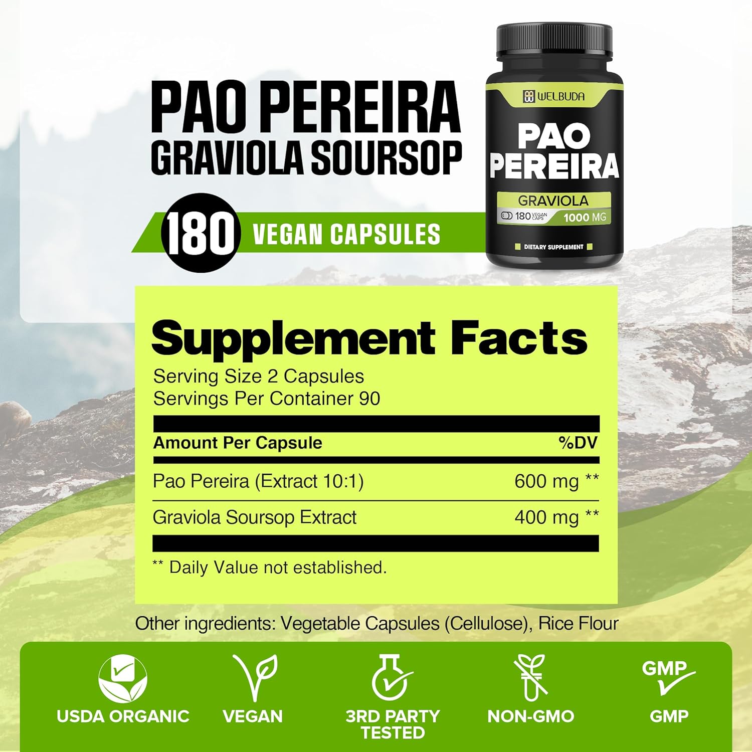 Super Strength Per Serving with 1000mg: Pao Pereira powder & Graviola Soursop comes from premium sources and supports the immune system, comfortable mood, body balance, and strength; Have a happy and fulfilled life to achieve your goals, ambitions, and dreams; Respect yourself and take care of your physical health