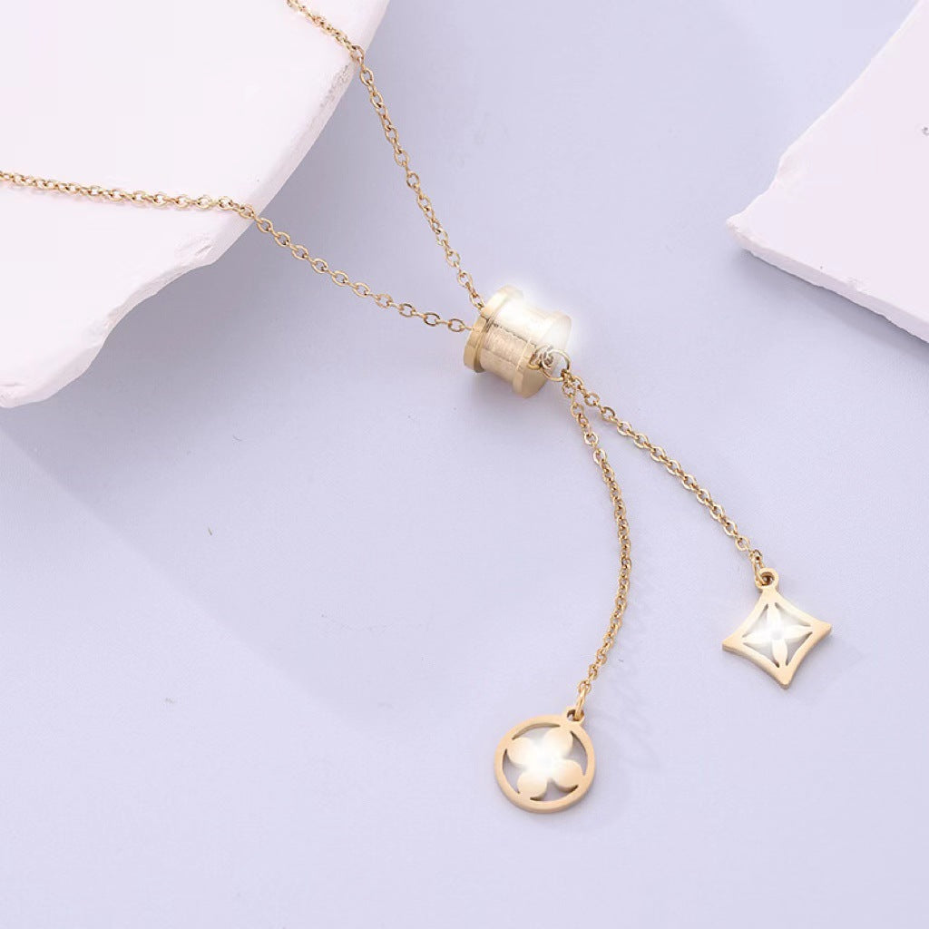 18K Gold Small Tassel Pendant Necklace β High-End Short Necklace with Four-Leaf Flower, Fashionable & Elegant