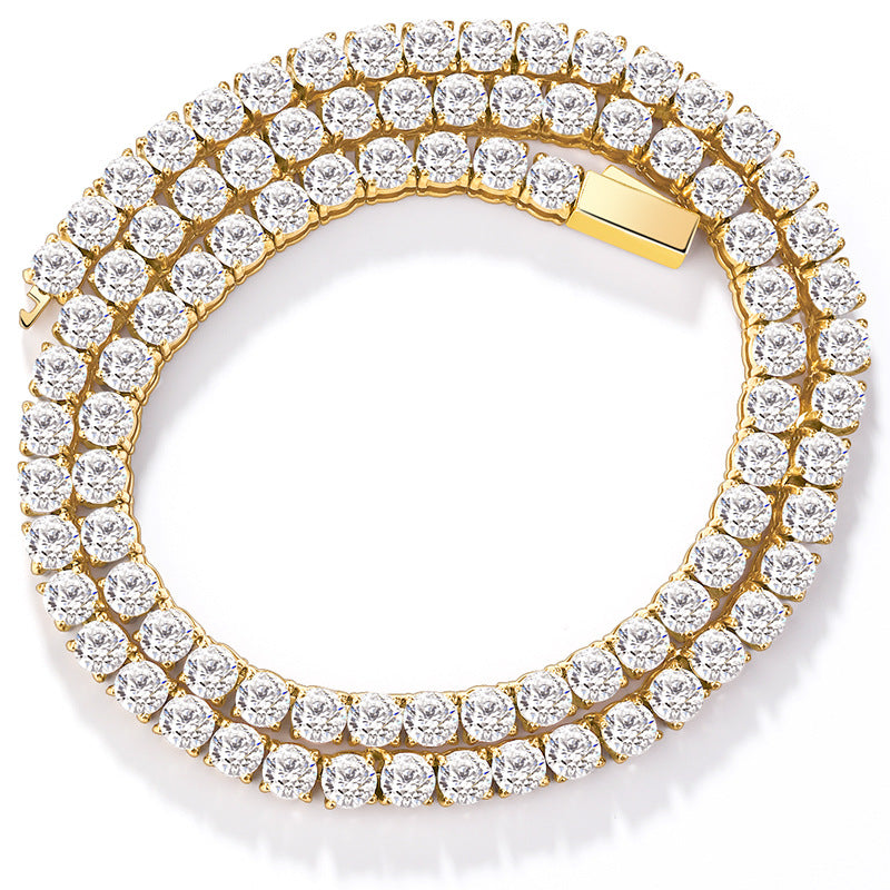 Make a bold statement with this 18K White Gold Titanium Steel Zircon Tennis Necklace, designed for those who love the perfect mix of luxury and urban style. Each zircon is carefully inlaid to create a dazzling, full-diamond effect that catches the light from every angle.