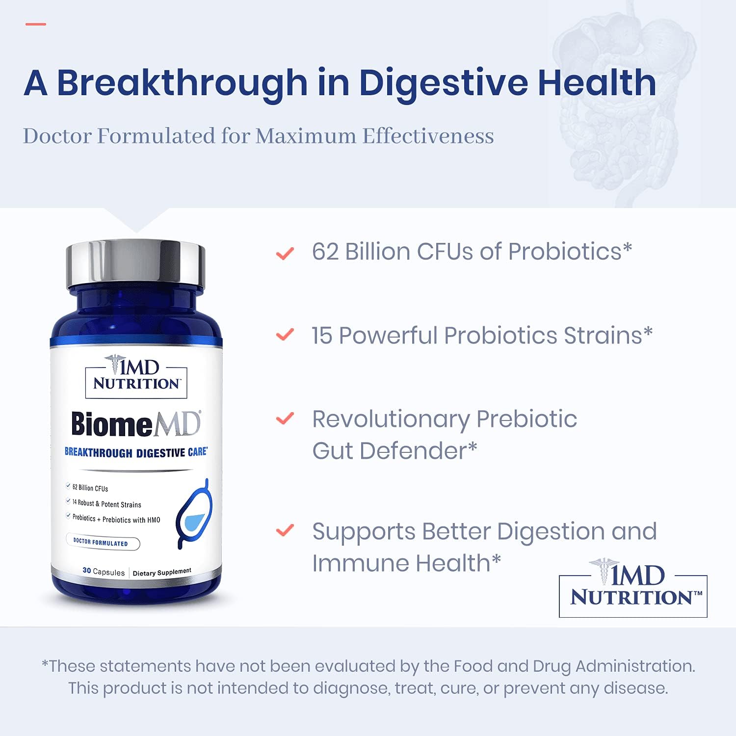 2 >Doctor-Formulated for Potency: Formulated by a board-certified physician, this breakthrough 1MD Nutrition formula delivers a whopping 62 billion CFUs of 15 robust probiotics.* Every capsule provides unparalleled, integrative digestive support and critical immune system health